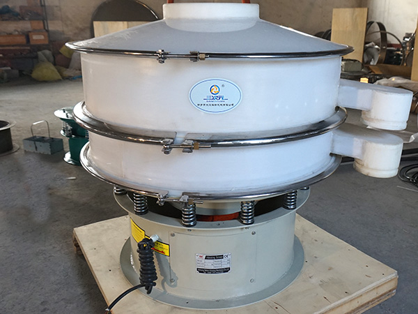 塑料振動(dòng)篩也叫聚丙烯振動(dòng)篩,塑料防腐蝕振動(dòng)篩或塑料旋振篩,主要是為了解決篩分物料與金屬接觸而產(chǎn)生化學(xué)反應(yīng)的問題。塑料防腐蝕振動(dòng)篩從篩框、篩網(wǎng)和清網(wǎng)裝置采用非金屬材料,排除了一些特殊物料與金屬接觸會(huì)產(chǎn)生化學(xué)反應(yīng)的問題。塑料振動(dòng)篩采用聚丙烯PP材料通過特殊加工制作的用于滿足具有酸堿性、腐蝕性物料的篩分作業(yè)。