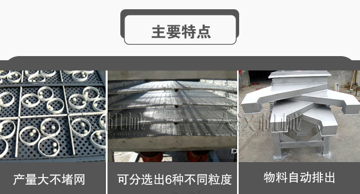 3、單層或多層分級(jí)使用,多可以分選出6種不同粒度的物料;