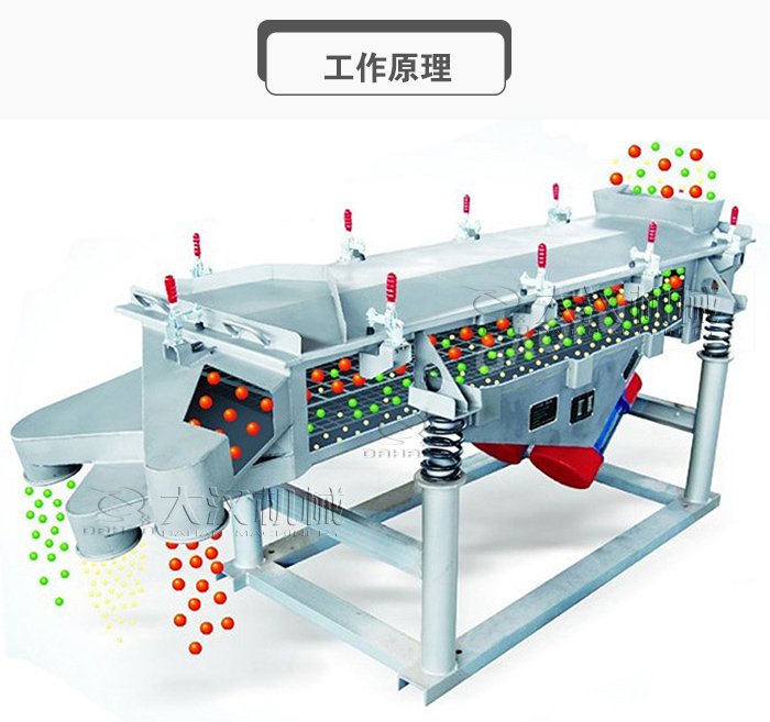 多層直線振動(dòng)篩的驅(qū)動(dòng)力是雙振動(dòng)電機(jī),依靠振動(dòng)電機(jī)產(chǎn)生的激振來開展作業(yè),篩機(jī)的運(yùn)動(dòng)軌跡是一條直線,在振動(dòng)力和物料的雙重作用下,將篩面上的物料拋起向前做跳躍式直線運(yùn)動(dòng),從而正確契合網(wǎng)篩進(jìn)行多層篩分。