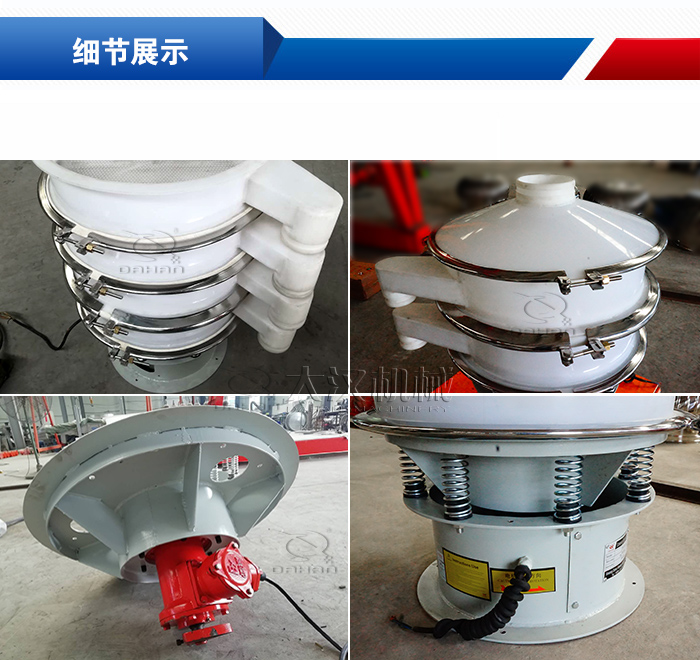 化工振動篩是特殊性、高粘度、細(xì)粒物料篩分過濾設(shè)備,又叫化工耐腐蝕振動篩,主要用于篩分各種化工物料,細(xì)粉、微粉、及干、濕物料等,適用于酸性、堿性、油性等化工生產(chǎn)。大漢化工振動篩篩分細(xì)至500目或0.028mm,過濾小可至5微米。可裝一至五層篩網(wǎng),能同時對二至六個等級的物料進(jìn)行分選或過濾。
