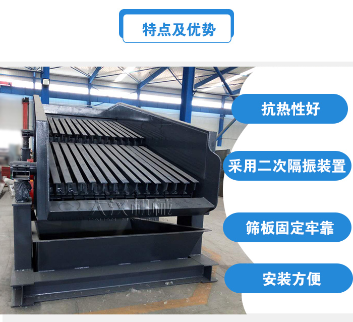 1、抗熱性好,橫梁及篩箱側板采用耐熱板或不銹鋼板制造,并用環(huán)槽鉚釘鉚接,篩板采用耐磨耐高溫材料制成,可以耐600-800℃的高溫;