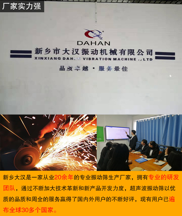新鄉(xiāng)大漢是一家從業(yè)20余年的專業(yè)振動(dòng)篩生產(chǎn)廠家,擁有專業(yè)的研發(fā)團(tuán)隊(duì),通過不斷加大技術(shù)革新和新產(chǎn)品開發(fā)力度,超聲波振動(dòng)篩以優(yōu)質(zhì)的品質(zhì)和周全的服務(wù)贏得了國(guó)內(nèi)外用戶的不斷好評(píng),現(xiàn)有用戶已遍布全球30多個(gè)國(guó)家。