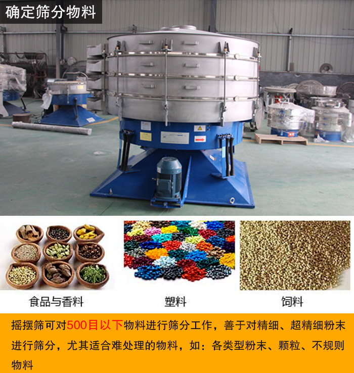 搖擺篩可對500目以下物料進行篩分工作,善于對精細、超精細粉末進行篩分,尤其適合難處理的物料,如:各類型粉末、顆粒、不規(guī)則物料。