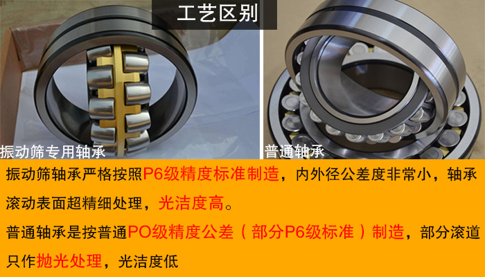 振動(dòng)篩軸承嚴(yán)格按照P6級(jí)精度標(biāo)準(zhǔn)制造,內(nèi)外徑公差度非常小,軸承滾動(dòng)表面超精細(xì)處理,光潔度高。
