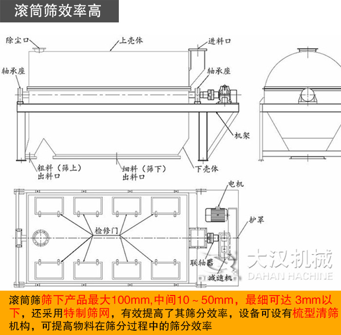 以上是新鄉(xiāng)大漢單臺(tái)滾筒篩價(jià)格介紹及分析,大漢技術(shù)人員免費(fèi)為用戶提供滾筒篩選型、安裝、調(diào)試等指導(dǎo),歡迎用戶前來咨詢或直接來廠參觀考察。