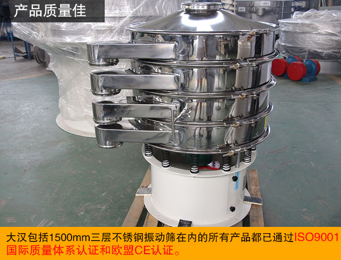 大漢生產(chǎn)出來的每一臺不銹鋼振動(dòng)篩均采用先進(jìn)的生產(chǎn)工藝、精湛的焊接工藝制造而成,大漢從選材的精良,到技術(shù)的革新,再到做工的精湛,再到成品的嚴(yán)格檢查,對每一環(huán)節(jié)都牢牢監(jiān)控,。目前,大漢包括1500mm三層不銹鋼振動(dòng)篩在內(nèi)的所有產(chǎn)品都已通過ISO9001國際質(zhì)量體系認(rèn)證和歐盟CE認(rèn)證。