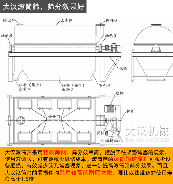 選購滾筒篩設(shè)備,優(yōu)選新鄉(xiāng)大漢。另外,滾筒篩型號種類齊全,各種型號的滾筒篩現(xiàn)貨直供,還可根據(jù)用戶需求進行定制化生產(chǎn),質(zhì)優(yōu)價廉,歡迎前來選購。