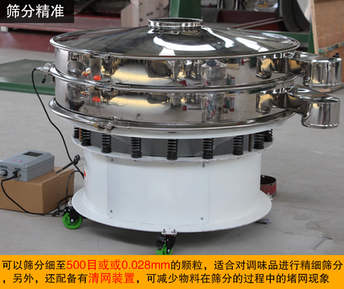 三次元振動篩篩分物料范圍廣,可以篩分細(xì)至500目或或0.028mm的顆粒,適合對調(diào)味品進(jìn)行精細(xì)篩分,另外,還配備有清網(wǎng)裝置,可減少物料在篩分的過程中的堵網(wǎng)現(xiàn)象,極大的提高了篩機(jī)的篩分產(chǎn)量和篩分效率。
