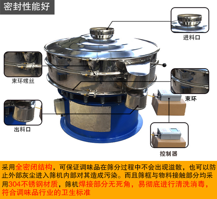 三次元振動篩采用全密閉結(jié)構(gòu),可保證調(diào)味品在篩分過程中不會出現(xiàn)溢散,也可以防止外部灰塵進(jìn)入篩機(jī)內(nèi)部對其造成污染。而且篩框與物料接觸部分均采用304不銹鋼材質(zhì),篩機(jī)焊接部分無死角,易進(jìn)行清洗消毒,符合調(diào)味品行業(yè)的衛(wèi)生標(biāo)準(zhǔn)。