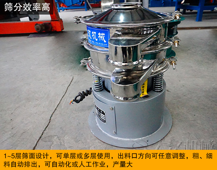 不銹鋼振動(dòng)篩配置有彈跳球清網(wǎng)裝置,可減少奶粉篩分過(guò)程中造成的篩孔堵塞現(xiàn)象,提高篩分效率。此外,大漢不銹鋼振動(dòng)篩有1~5層篩面設(shè)計(jì),可單層或多層使用,出料口方向可任意調(diào)整,粗、細(xì)料自動(dòng)排出,可自動(dòng)化或人工作業(yè),產(chǎn)量大。