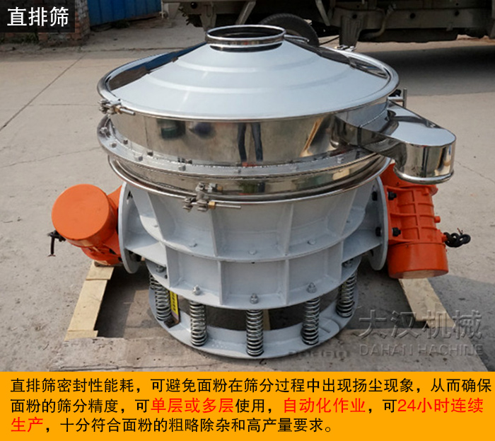 在較具規(guī)模的面粉生產(chǎn)線上,如:面粉廠,大多會使用直排篩對面粉進(jìn)行篩分除雜。