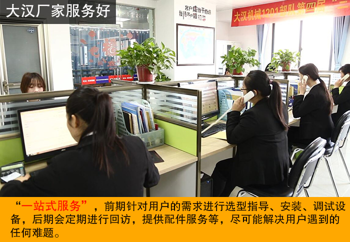 大漢始終腳踏實地地走“一站式服務(wù)'路線,前期針對用戶的需求進行選型指導(dǎo)、安裝、調(diào)試設(shè)備,后期會定期進行回訪,提供配件服務(wù)等,盡可能解決用戶遇到的難題,讓用戶買的安心,用的放心。