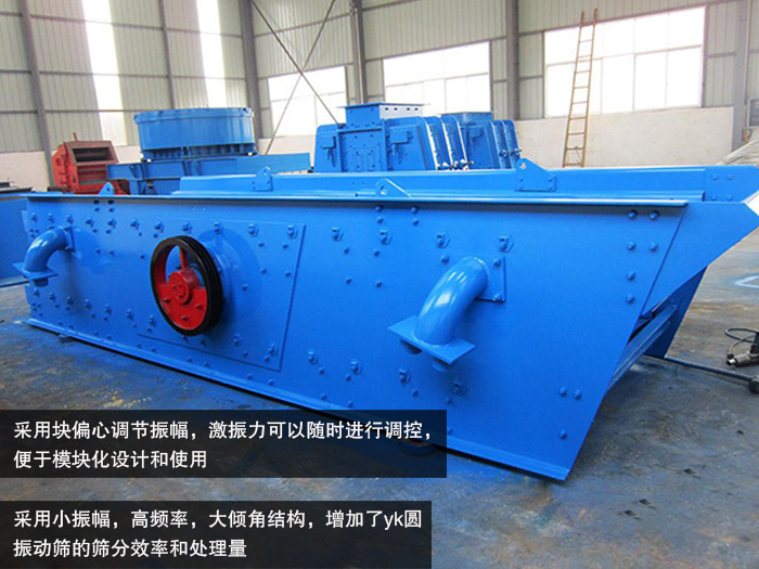由于yk圓振動(dòng)篩篩箱振動(dòng)強(qiáng)烈,減少了物料堵塞篩孔的現(xiàn)象,使yk圓振動(dòng)篩具有較高的篩分效率和生產(chǎn)率。