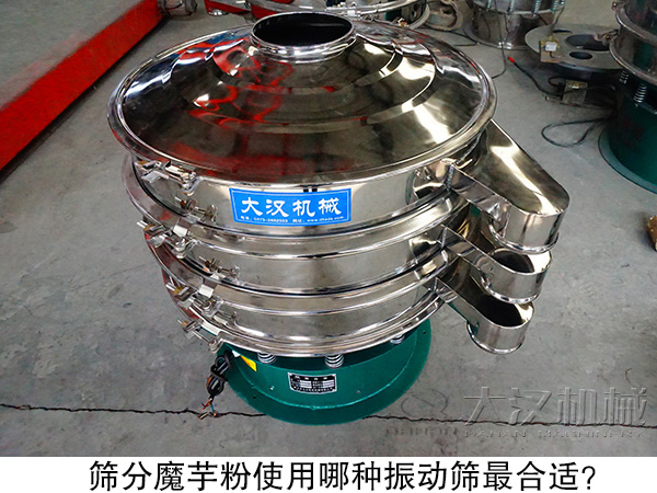 魔芋粉是由魔芋制成的粉體,可以有效防治高血壓和高血脂,屬于一種天然的保健品,在魔芋粉生產(chǎn)加工過(guò)程中,需要使用振動(dòng)篩對(duì)其進(jìn)行篩分除雜作業(yè),那么篩分魔芋粉使用哪種振動(dòng)篩合適呢?大漢廠家在這里向您推薦旋振篩,詳細(xì)介紹如下: