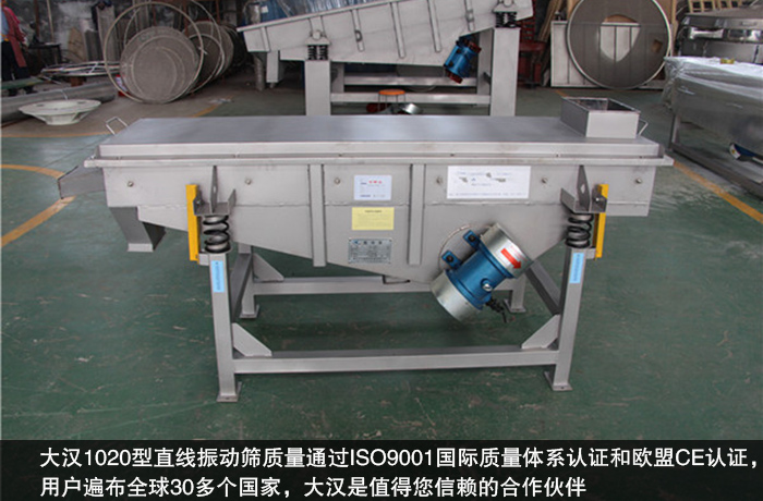 大漢在豐富的生產(chǎn)經(jīng)驗(yàn)上和成熟的技術(shù)工藝上,始終堅(jiān)持把握產(chǎn)品的合理定位,對(duì)于設(shè)備生產(chǎn)、加工、裝配等環(huán)節(jié)進(jìn)行層層監(jiān)控,以確保優(yōu)質(zhì)的產(chǎn)品質(zhì)量,大漢1020型直線振動(dòng)篩質(zhì)量通過ISO9001國際質(zhì)量體系認(rèn)證和歐盟CE認(rèn)證,用戶遍布全球30多個(gè)國家,大漢是值得您信賴的合作伙伴。