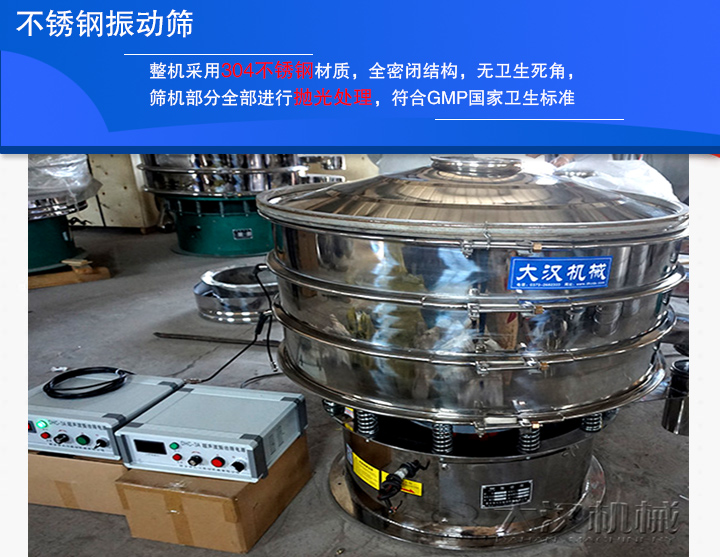 不銹鋼振動篩整機(jī)采用304不銹鋼材質(zhì),全密閉結(jié)構(gòu),無衛(wèi)生死角,篩機(jī)部分全部進(jìn)行剖光處理,符合衛(wèi)生標(biāo)準(zhǔn)。