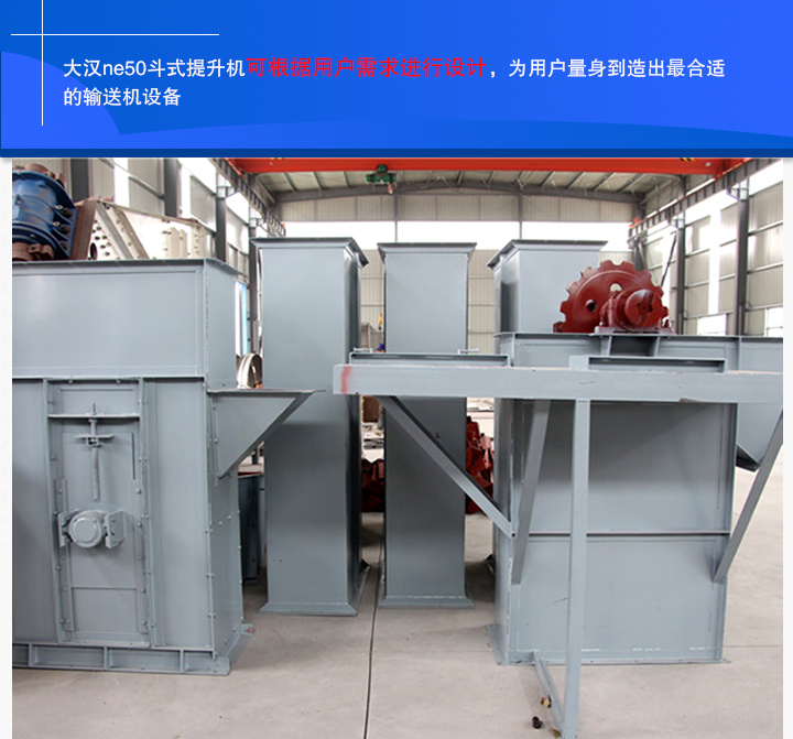 大漢ne50斗式提升機(jī)可根據(jù)用戶需求進(jìn)行設(shè)計(jì),為用戶量身到造出合適的輸送機(jī)設(shè)備。