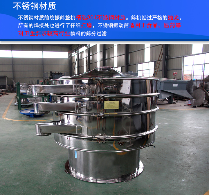 不銹鋼材質(zhì)的旋振篩即為不銹鋼振動篩,其整機精選304不銹鋼材質(zhì)。篩機經(jīng)過嚴格的拋光,所有的焊接處也進行了仔細打磨,不銹鋼振動篩適用于食品、醫(yī)藥等對衛(wèi)生要求較高行業(yè)?物料的篩分過濾。