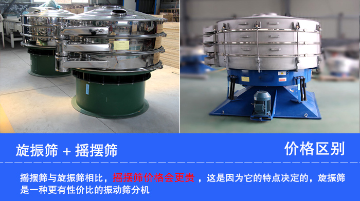 搖擺篩與旋振篩相比,搖擺篩價格會更貴 ,這是因為它的特點決定的,旋振篩是一種更有性價比的振動篩分機。