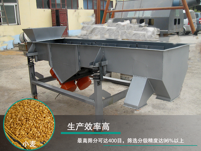 直線振動(dòng)篩高篩分可達(dá)400目,篩選分級(jí)精度達(dá)96%以上,密封性能好,所以在篩分小麥時(shí)無(wú)粉塵溢散,篩分效率高。