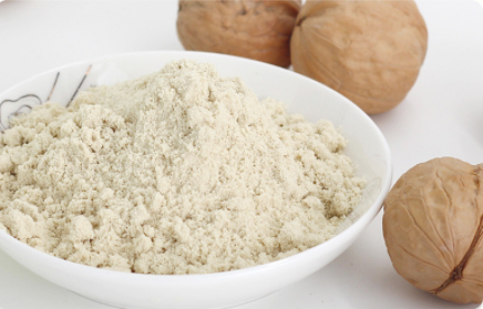核桃粉采用優(yōu)質(zhì)核桃仁、白砂糖、全脂乳粉為主要原料,經(jīng)核桃仁浸泡、研磨、漿渣分離(去除苦澀的褐色外皮)、脫腥、配料、均質(zhì)、濃縮殺菌、噴霧干燥制成。