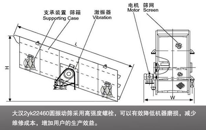 大漢2yk2460圓振動篩可與多種篩分輔助配置,更好地理解客戶個性化的篩分需求,滿足不同行業(yè)的需求,達到佳篩分目的。