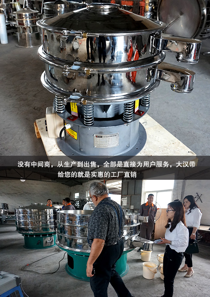 大漢不銹鋼旋振篩沒有中間商,從生產(chǎn)到出售,全部是直接為用戶服務,大漢帶給您的就是實惠的工廠直銷價,保證讓用戶更省錢、更省心。