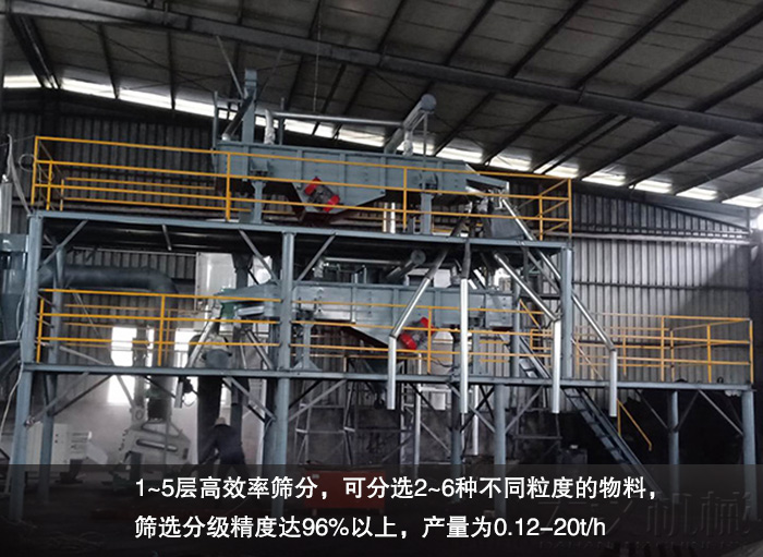直線振動篩1~5層高效率篩分,可分選2~6種不同粒度的物料,物料篩分后自動化排料,篩選分級精度達96%以上,篩分效率高,產(chǎn)量為0.12-20t/h,適用于流水線自動化作業(yè)。