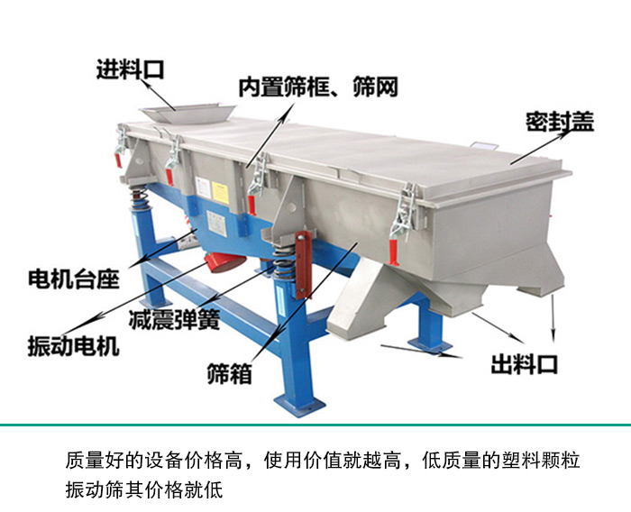 1、設(shè)備質(zhì)量:質(zhì)量好的設(shè)備價格高,使用價值就越高,反之,低質(zhì)量的塑料顆粒振動篩其價格就低。
