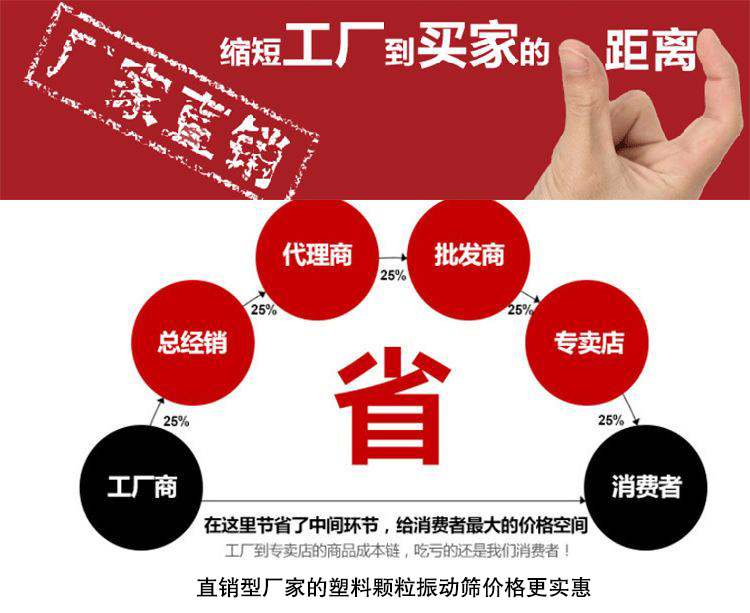 3、廠家模式:直銷型廠家的塑料顆粒振動篩價格更實惠,因為減少中間費用,而在代理商處購會的塑料顆粒振動篩設(shè)備價格就會偏高。