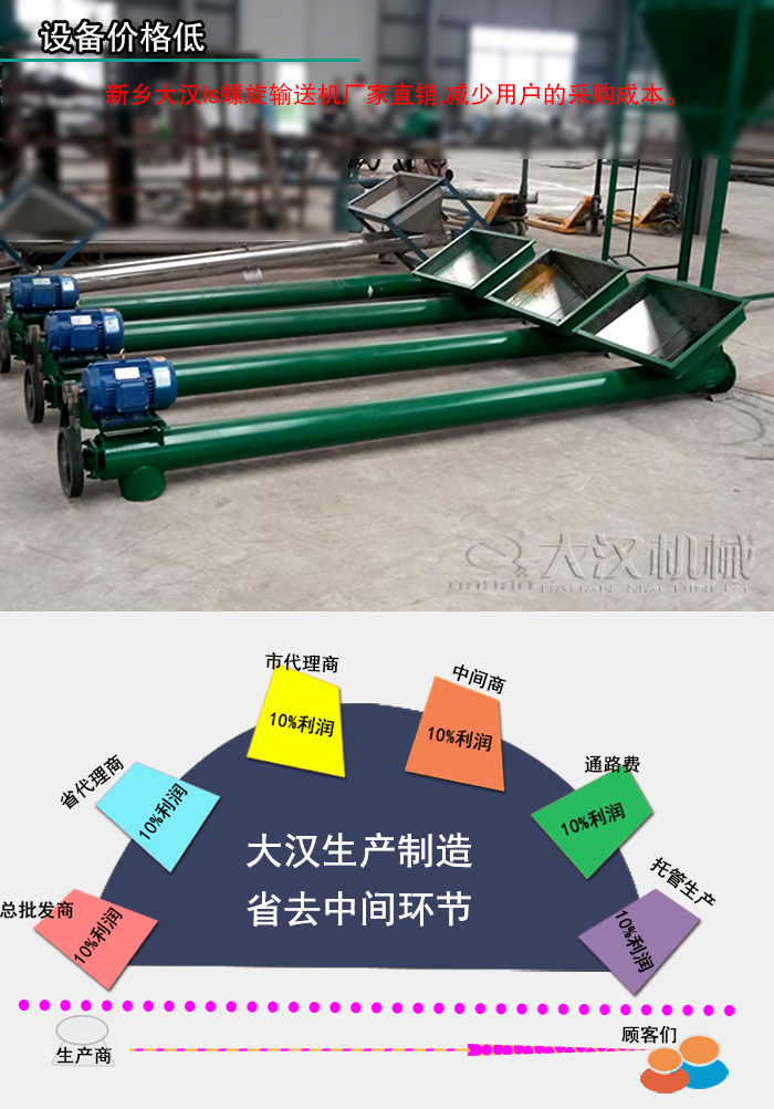 新鄉(xiāng)大漢ls螺旋輸送機廠家直銷,售出的每一臺設備都是直接面向我們的用戶,不存在中間商,可以在一定程度上減少用戶的采購成本。