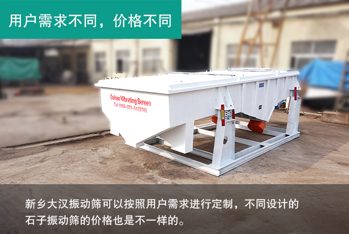 由于石子直線振動(dòng)篩廠家眾多,不同廠家的報(bào)價(jià)不同,這里簡(jiǎn)單以新鄉(xiāng)大漢舉例,為大家對(duì)時(shí)產(chǎn)20噸石子直線振動(dòng)篩價(jià)格進(jìn)行介紹說(shuō)明。以下即是相關(guān)介紹: