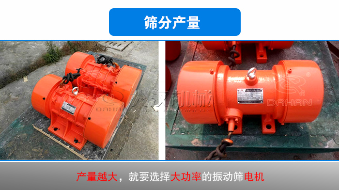 選擇一臺好的振動篩要綜合看整機的配置,而不是單一的去看電機功率,大漢機械專業(yè)生產(chǎn)各類振動篩與振動電機,并承接特殊型號的設(shè)計與制作,歡迎用戶隨時前來咨詢。