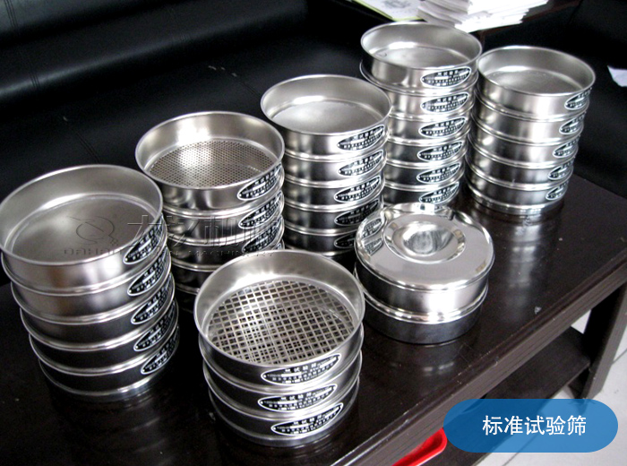 標(biāo)準(zhǔn)篩又叫標(biāo)準(zhǔn)試驗(yàn)篩,是具有標(biāo)準(zhǔn)篩孔的篩析工具,又是檢驗(yàn)其他粒度檢測方法的工具或依據(jù),實(shí)驗(yàn)室篩分所用的篩子是按表中有關(guān)標(biāo)準(zhǔn)制成的篩孔大小不一的試驗(yàn)套篩,即標(biāo)準(zhǔn)篩。標(biāo)準(zhǔn)篩是由直徑15~450mm,高為25~50mm的篩框和篩網(wǎng)組成。篩框不銹鋼板制成,實(shí)驗(yàn)室篩分用套篩是一個(gè)篩子套在另一個(gè)篩子上疊成的。上層的篩孔大,下層的篩孔小。上部加一個(gè)蓋,下部加一個(gè)底盤,以減少灰塵和損失。底盤還用來承接通過后一個(gè)篩子的細(xì)粒級(jí)產(chǎn)品。該設(shè)備對(duì)少量產(chǎn)品進(jìn)行分級(jí)及力度檢測。