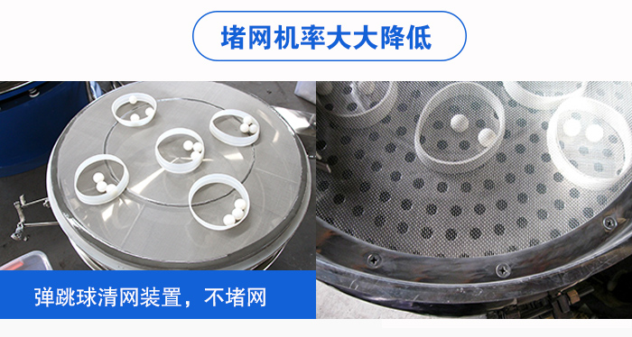 對(duì)于一些難篩分的硅藻土而言,使用旋振篩進(jìn)行處理篩分時(shí)可能會(huì)出現(xiàn)堵網(wǎng)現(xiàn)象,大漢廠(chǎng)家為了避免篩網(wǎng)堵塞在旋振篩上加彈跳球裝置,在保證篩分精度的情況下,還不堵網(wǎng)。