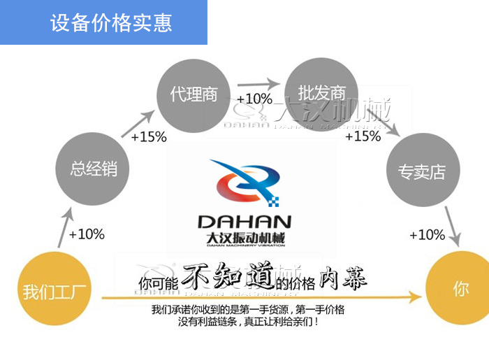 大漢機械是典型的直銷型廠家,因為做工成熟、批量生產(chǎn)、科學管理,減少成本、提升品質(zhì),提供的不銹鋼直線篩價格更實惠,購買更合理。
