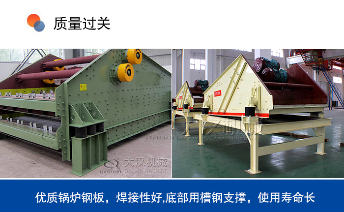 大漢是一家擁有20多年生產(chǎn)經(jīng)驗(yàn)的振動(dòng)篩生產(chǎn)廠家,我們的泥漿脫水篩板材及相關(guān)配件均由正規(guī)供應(yīng)商提供,可提供檢驗(yàn)合格證和相關(guān)資質(zhì)認(rèn)證,質(zhì)量通過(guò)ISO國(guó)際質(zhì)量體系認(rèn)證和歐盟CE認(rèn)證,脫水篩側(cè)板采用優(yōu)質(zhì)鍋爐鋼板,焊接性好,焊工焊過(guò)之后會(huì)嚴(yán)格不能出現(xiàn)焊孔,底部用槽鋼支撐,使用壽命長(zhǎng)。