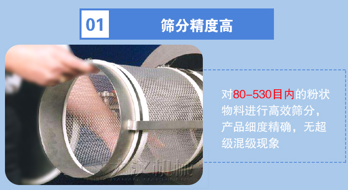 氣旋篩適用篩選精細(xì)粉末、密度小(比重輕)、輕微濕度、易附粘性粉或有精電反應(yīng)的物料,用纖維網(wǎng)篩選可避免產(chǎn)生靜電反應(yīng)現(xiàn)象,能解決普通旋振篩和直線振動篩不能篩選的生產(chǎn)工藝難度。主要篩分優(yōu)勢如下: