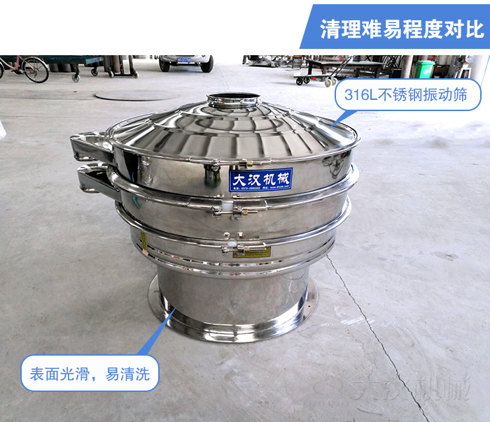 316L不銹鋼材質(zhì)振動(dòng)篩表面光滑在生產(chǎn)過(guò)程中振動(dòng)篩表面不會(huì)吸附物料,生產(chǎn)完成后清理方便節(jié)省設(shè)備維護(hù)時(shí)間;