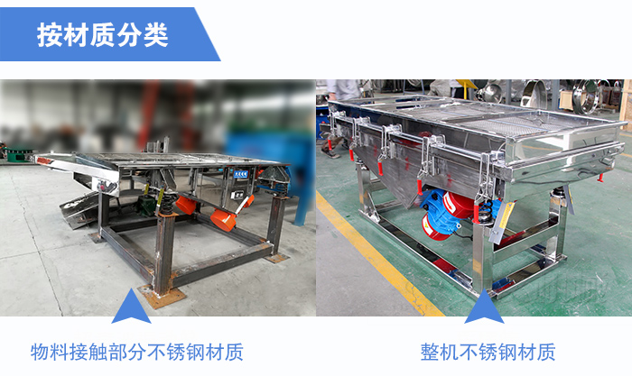 不銹鋼直線振動(dòng)篩:篩機(jī)材質(zhì)改為304不銹鋼材質(zhì),進(jìn)行嚴(yán)格的拋光密封處理,適合醫(yī)藥、食品行業(yè),符合衛(wèi)生標(biāo)準(zhǔn)。