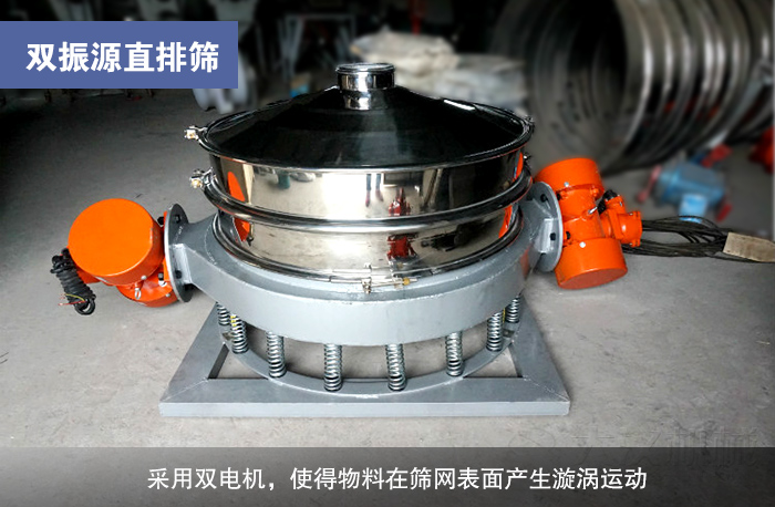 該種類型的直排式主要采用雙電機,使得物料在篩網表面產生漩渦運動,有自動排料功能;