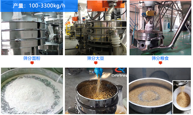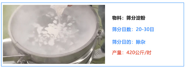 客戶四:篩分淀粉,除雜,過(guò)20-30目篩網(wǎng),產(chǎn)量420公斤/時(shí),一天連續(xù)24小時(shí)生產(chǎn)