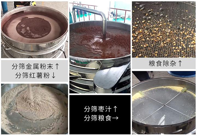 客戶五:400旋振篩 接觸物料部分為不銹鋼 1層 篩分目的是把棗泥和棗核分開
