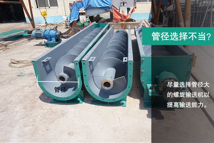 螺旋輸送機(jī)管徑的大小也同樣影響著其輸送能力。在同等條件下,螺旋管直徑較大的輸送機(jī),它的輸送量及輸送能力會(huì)比管徑小的要高。