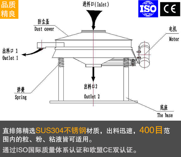 大漢公司以優(yōu)良的產(chǎn)品質(zhì)量,得到國(guó)內(nèi)外各界企業(yè)的鼎力支持與信任,并且建廠十余年中,擁有豐富的生產(chǎn)經(jīng)驗(yàn),憑借著對(duì)設(shè)備質(zhì)量的嚴(yán)格把關(guān),獲得了業(yè)內(nèi)外朋友的一致好評(píng)。產(chǎn)品均已通過(guò)ISO9001國(guó)際質(zhì)量體系認(rèn)證和歐盟CE雙認(rèn)證,產(chǎn)品設(shè)備已遠(yuǎn)銷至海外30多個(gè)國(guó)家(如德國(guó),意大利等),用戶可以放心購(gòu)買。大漢直排篩精選SUS304不銹鋼材質(zhì),物料在篩機(jī)中停留時(shí)間短,出料迅速,400目范圍內(nèi)的粒、粉、粘液皆可適用。