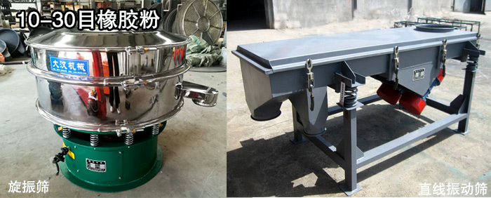 10-30目橡膠粉在制備過(guò)程中無(wú)需進(jìn)入磨粉設(shè)備,只需經(jīng)過(guò)粉碎、破碎即可得到,因此該粒徑的橡膠粉呈小顆粒狀而非絮狀,透篩率良好,因此建議使用旋振篩或直線篩即可。