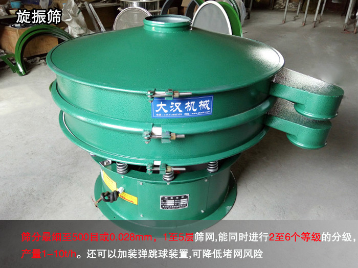 旋振篩作為一種高精度細(xì)粉篩分設(shè)備,篩分物料范圍廣,篩分細(xì)至500目或0.028mm,可篩1至5層篩網(wǎng),能同時(shí)進(jìn)行2至6個(gè)等級(jí)的分級(jí),一般情況下,不建議超過(guò)3層的設(shè)計(jì),層數(shù)過(guò)多,影響篩分精度,產(chǎn)量1-10t/h。還可以加裝彈跳球裝置,可減少堵網(wǎng)現(xiàn)象的發(fā)生,增加篩分產(chǎn)量和篩分精度。