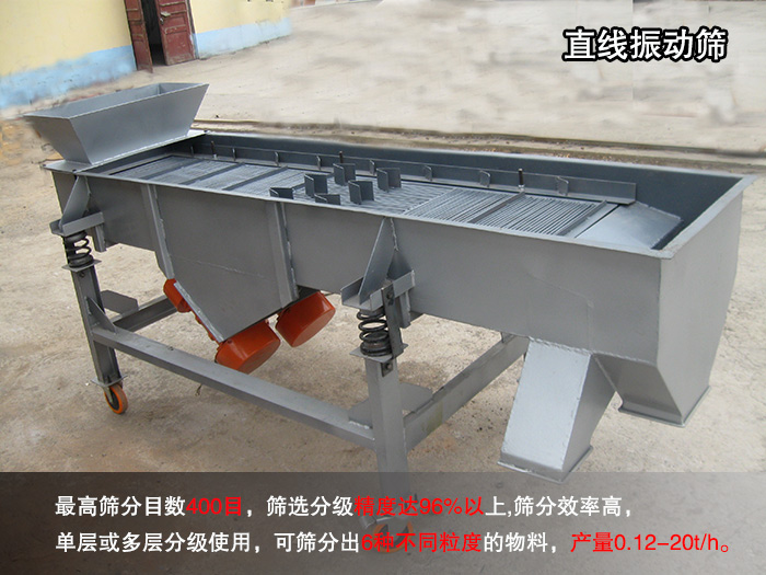 直線振動(dòng)篩運(yùn)用雙振動(dòng)電機(jī)驅(qū)動(dòng),高篩分目數(shù)400目,篩選分級(jí)精度達(dá)96%以上,篩分效率高,單層或多層分級(jí)使用,可篩分出6種不同粒度的物料,自動(dòng)化排料,處理量0.12-20t/h。