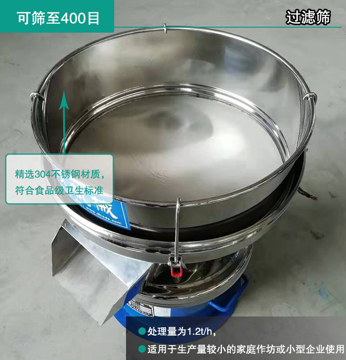 大漢450過(guò)濾篩是過(guò)濾效果好,可篩至400目,精選304不銹鋼材質(zhì),彈簧、振動(dòng)體都經(jīng)過(guò)防腐處理,不易生銹,可以延長(zhǎng)設(shè)備的使用壽命,衛(wèi)生,符合食品衛(wèi)生標(biāo)準(zhǔn),而且450過(guò)濾篩體積小,可以任意移動(dòng),不占用空間,處理量為1.2t/h,適用于生產(chǎn)量較小的家庭作坊或小型企業(yè)使用。