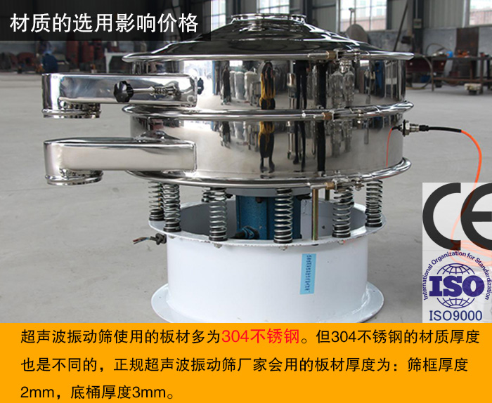 由于超聲波振動篩針對的物料多為精細(xì)物料,所以使用的板材多為304不銹鋼。但304不銹鋼的材質(zhì)厚度也是不同的,正規(guī)超聲波振動篩廠家會用的板材厚度為:篩框厚度2mm,底桶厚度3mm。而如果想要降低材質(zhì)成本就會有使用較薄的材質(zhì)。但這樣引起的后果就是一旦激振力強(qiáng)或使用時(shí)間較長,篩框容易出現(xiàn)斷裂等損壞現(xiàn)象,嚴(yán)重影響設(shè)備使用壽命和生產(chǎn)進(jìn)度。